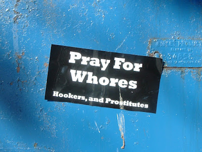 And psst! Just a friendly note to whoever made this sticker— Whores, hookers and prostitutes are all the same thing.