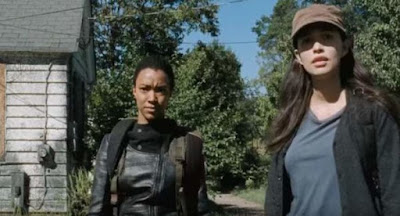 Meanwhile, Rosita and Sasha make their way to the Sanctuary, with a very half-baked plan to assassinate Negan. Rosita's plan is to enter the Sanctuary, find Negan among the thousands of people there and kill him at point blank range, which seems like the stupidest idea ever. Sasha would rather hole up inside an empty building outside the Sanctuary's gates and use a sniper rifle on Negan when he comes out, which seems like a much better plan. Rosita says if Sasha misses, their one chance will be gone. Sasha assures her she won't miss. The problem is that both plans will probably result in their deaths. One would think they'd try to plan out their attack a little better, but this is The Walking Dead, so...